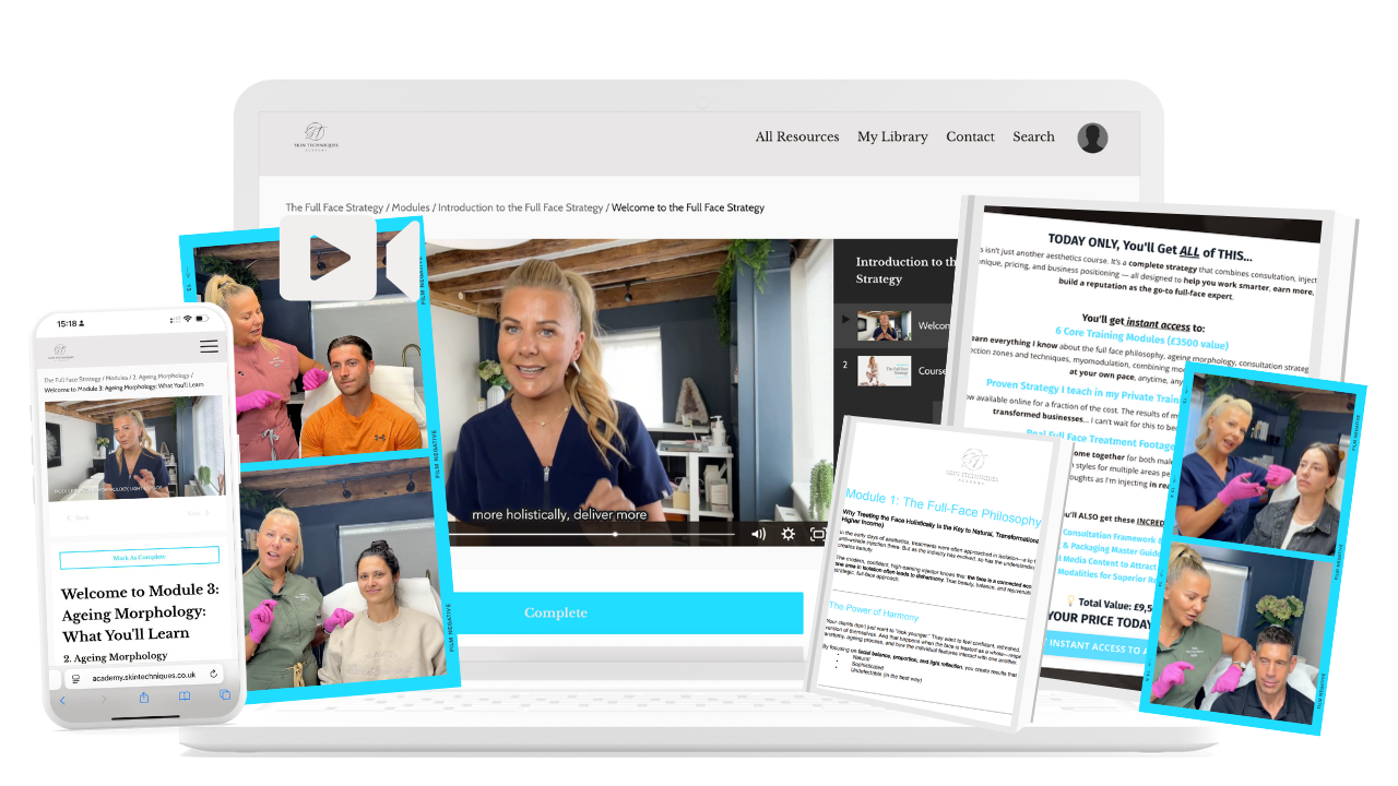 This isn’t just another aesthetics course. It’s a complete strategy that combines consultation, injection technique, pricing, and business positioning — all designed to help you work smarter, earn more, and build a reputation as the go-to full-face expert.